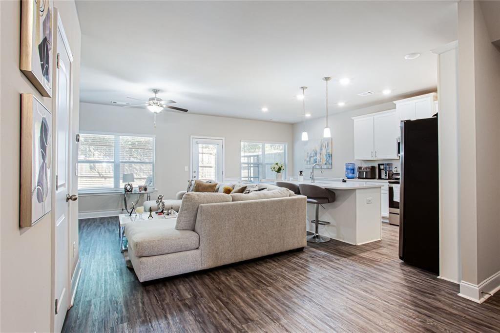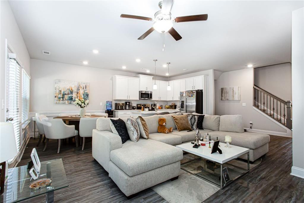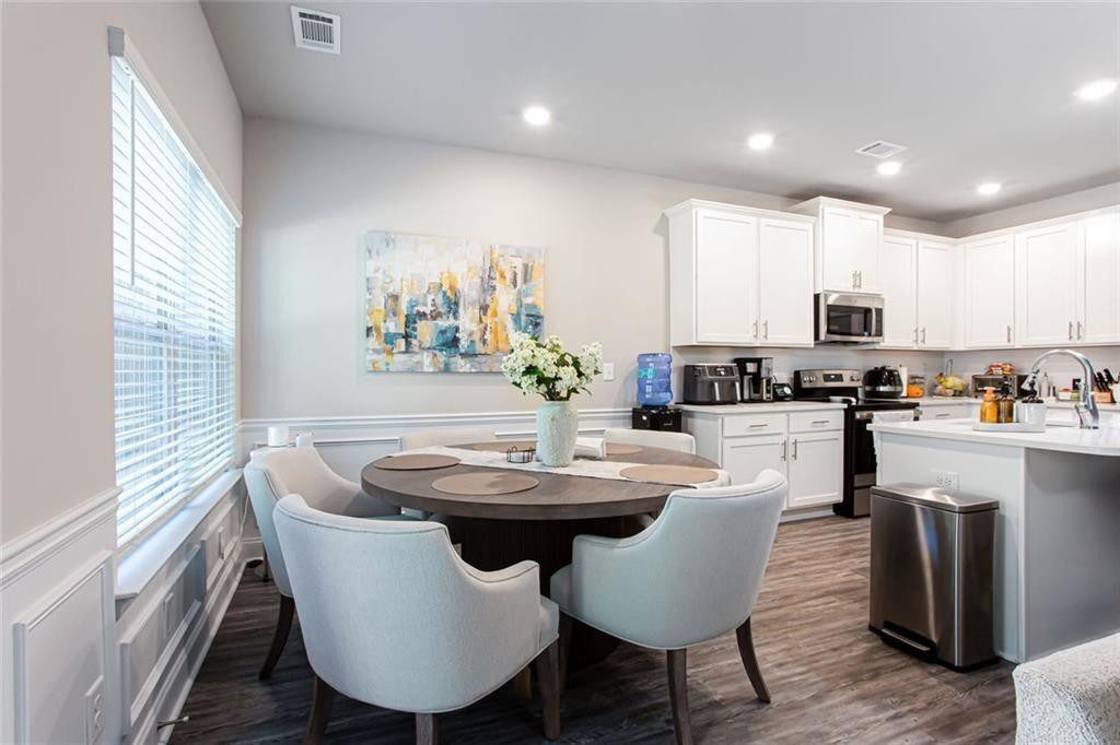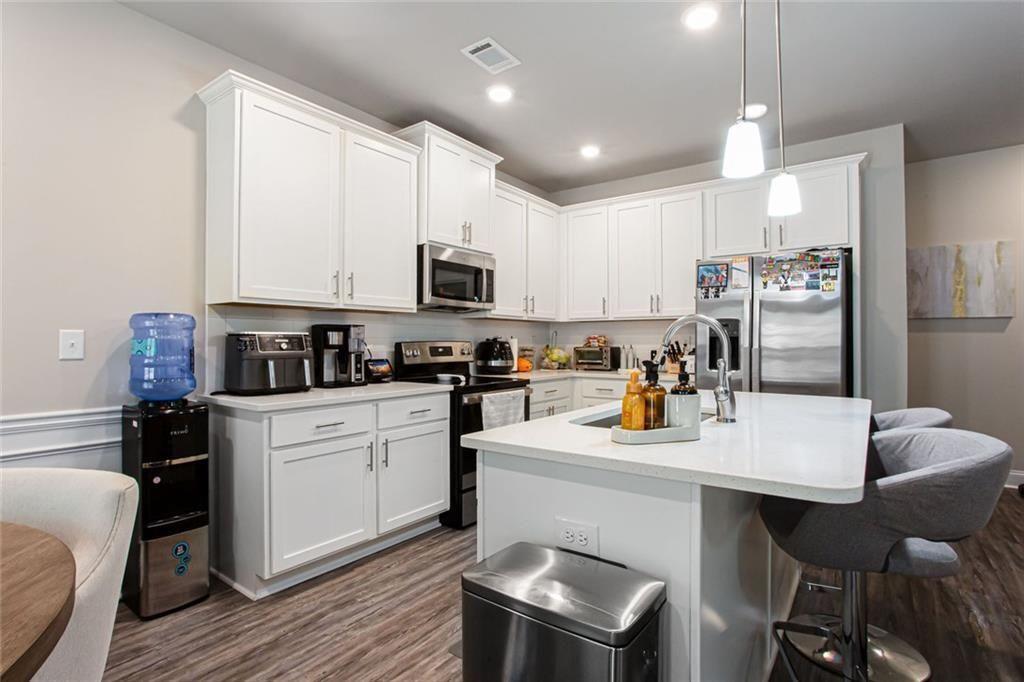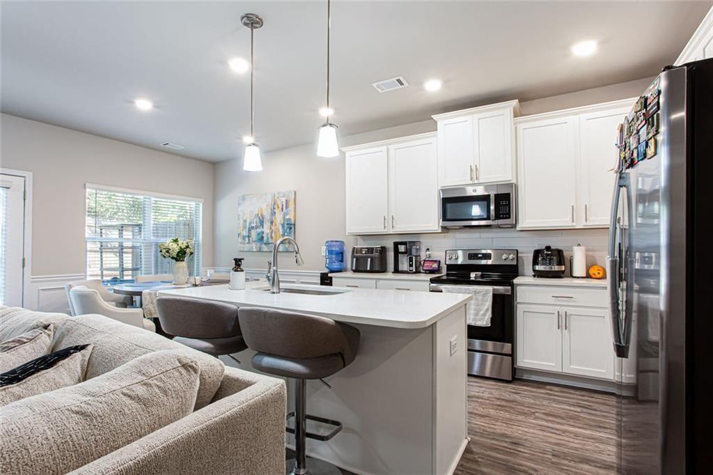 Special incentives offered. Location, Location, Location! This townhome is in the perfect location. If you are seeking a quiet secluded place to live that is close to just about everything and everywhere you need to go daily. The open floor plan displays all of the modern interior finishes. White kitchen cabinets with shaker doors, kitchen island with pendant lighting, stainless steel appliances, Quartz kitchen and bathroom countertops. Subway tile backsplash, LVP flooring on main level. Chair rail and shadow box trim in foyer & dining area. The bathroom features tile flooring. The upper level offers three bedrooms. The primary bedroom offers a trey ceiling, and a cozy sitting area. The bathroom shares a separate tub and shower with dual vanities. The secondary bedrooms display privacy from the primary bedroom. This home is what you are looking for, if you are looking for peace of mind at the end of each day. This home is only three years old. It is in excellence condition. The HOA is $119 a month, it covers the lawn care, termite bond, and exterior building maintenance.