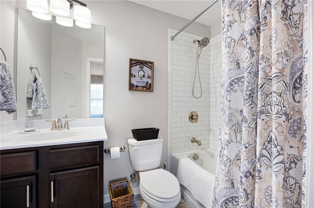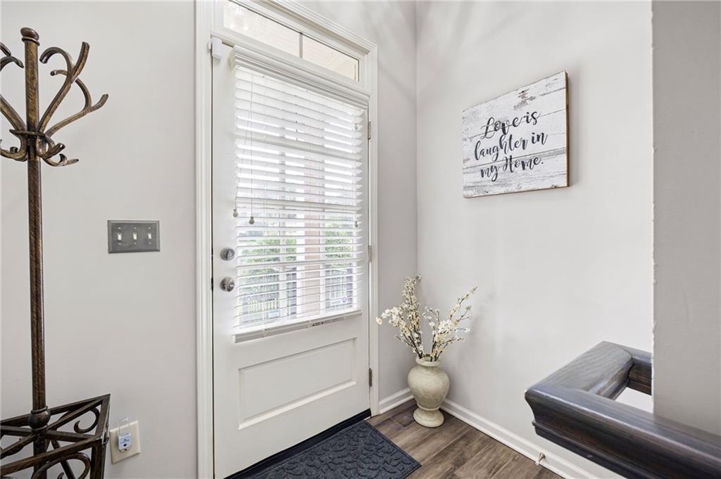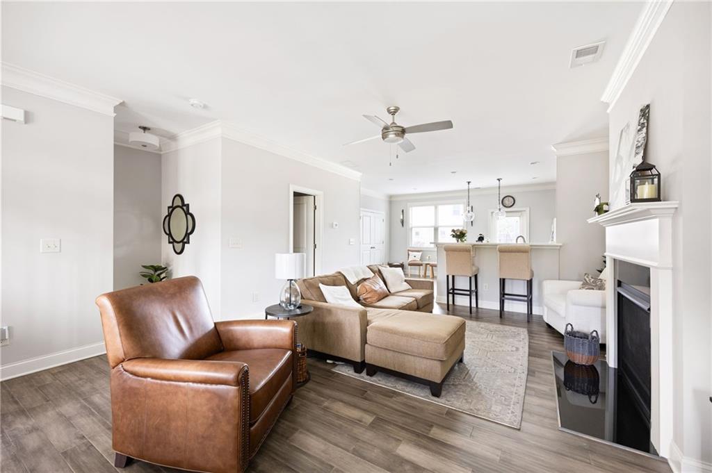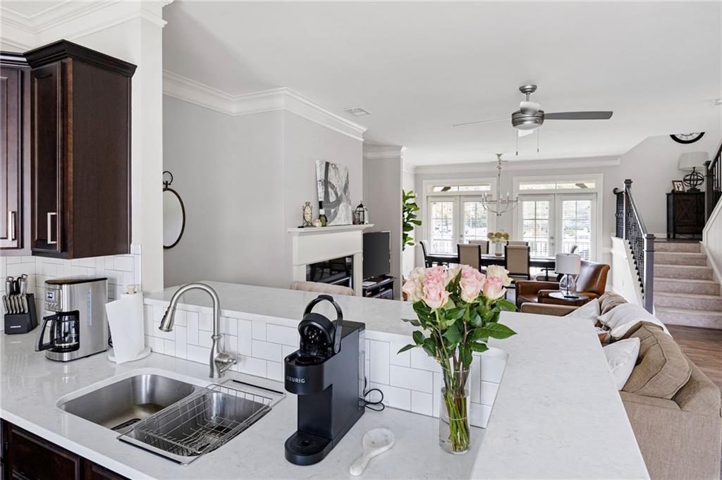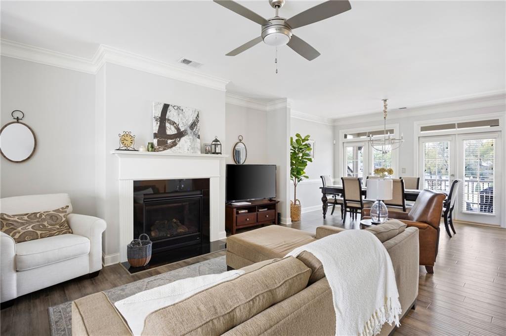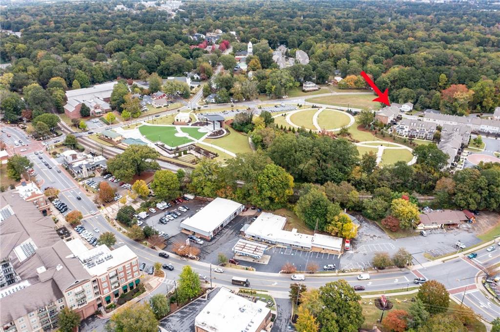 This gorgeous 4-bedroom townhome overlooks the park in downtown Kennesaw. You will love this Texas Floor Plan with 9 ft ceilings, hardwoods, crown molding, and new light fixtures. The main level boasts the chef's kitchen with an oversized island, quartz countertops, stainless appliances, tile backsplash, under cabinet lighting, and Pottery Barn light fixtures. It opens to the eat in area, fireside family room, powder bathroom, and dining room. The dining room is ready to entertain your guests with views of the park. The French doors lead you to your freshly stained deck overlooking the park where you will enjoy a private viewing of the 4th of July fireworks show. Enjoy a cup of coffee on your front balcony that is newly painted. The main floor continues with the walk in laundry room and powder bathroom. The Terrace level will greet your guests with open arms. It is appointed with new light fixtures and an ensuite. The top floor features the owner's suite with gorgeous views of the park, crown molding, a trey ceiling, ceiling fan, his and her closets, tiled shower with bench and dual vanities. There are two additional bedrooms with ceiling fans and a full hall bathroom. You are moments away from the Depot Park & Piedmont Bank Amphitheater, restaurants and shops. This community is close to KSU, Kennesaw Mountain National Battlefield Park, Whole Foods, and I-75, Acworth and Marietta.