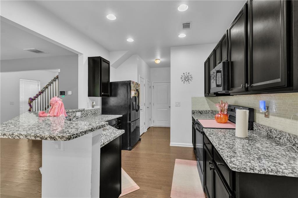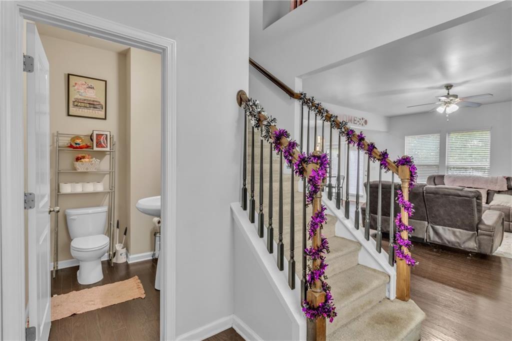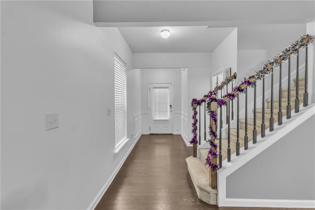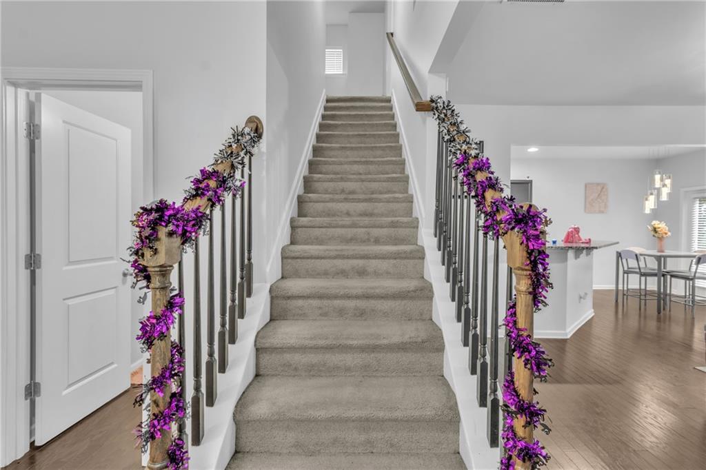 Welcome to this charming, move-in ready residence nestled in one of Lawrenceville’s most desirable areas! Enjoy quick access to downtown, restaurants, and entertainment while living in comfort and style. The main level offers an inviting open floor plan with rich hardwood floors, a modern kitchen featuring granite countertops and a two-tier breakfast bar, and a convenient half bath. Upstairs, you’ll find three generously sized bedrooms with vaulted ceilings that enhance the sense of space. The primary suite boasts a large walk-in closet and private bath. Outside, the upgraded patio provides the perfect setting for gatherings. LOW HOA includes lawn maintenance for easy living!