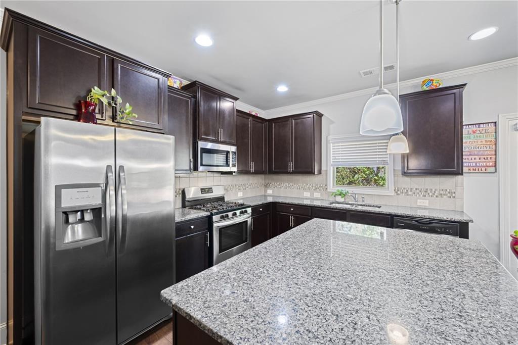 Make your way into this beautifully maintained five-bedroom, four-and-one-half-bath Georgetown plan, offering over 3,000 square feet of comfort and style. Built in 2019, this full-brick home features an inviting open-concept design that’s great for entertaining or everyday living. The chef’s kitchen shines with granite countertops, stainless-steel appliances, a built-in desk, and an oversized island that flows into the spacious family room with corner fireplace—ideal for gatherings both big and small. A main-level bedroom with private access to a full bath provides the ideal setup for guests, family, or in-laws, offering comfort and privacy on the first floor. Upstairs, unwind in the custom home theater with tiered risers, or retreat to the oversized, luxurious oversized owner’s suite featuring a spa-style bath, dual vanities, and a large walk-in closet. Enjoy outdoor living with a fenced backyard, covered front porch, and three-car garage complete with custom shelving. Located in a swim/tennis community, just minutes from shopping, dining, and recreational parks, this home combines space, convenience, and charm in one exceptional package. An absolute must-see in Powder Springs!