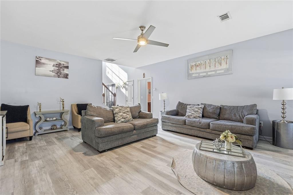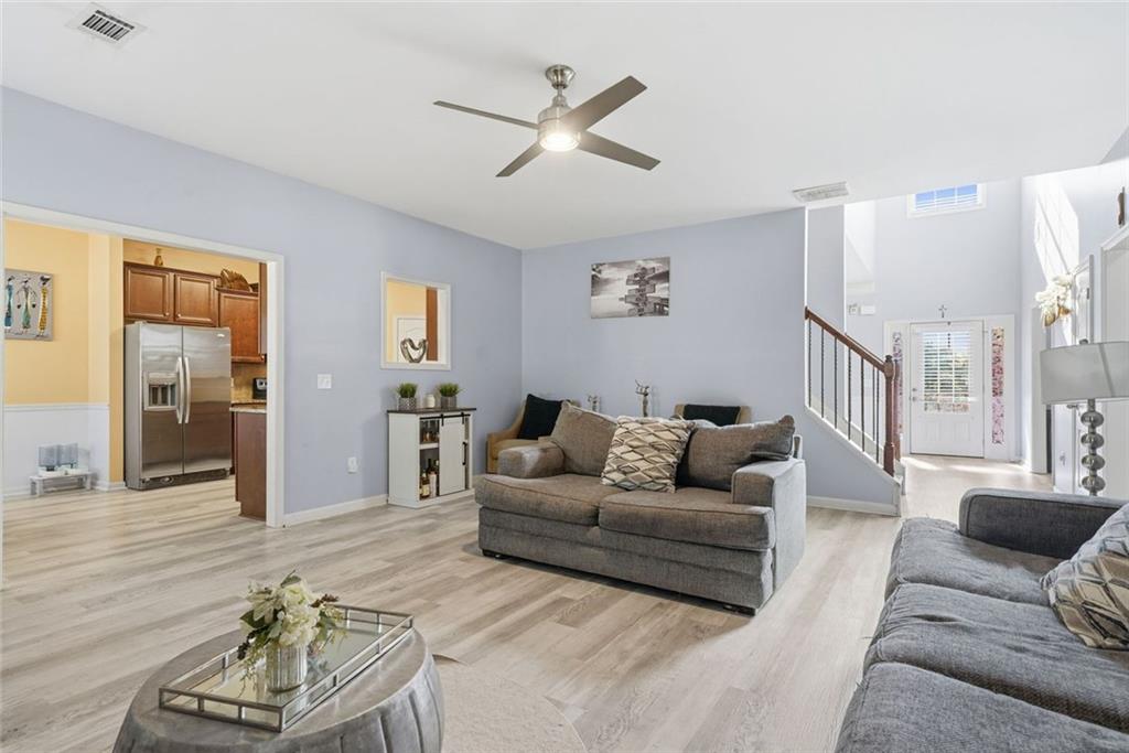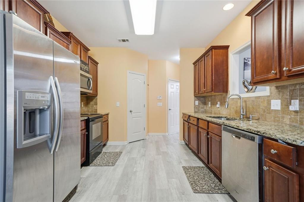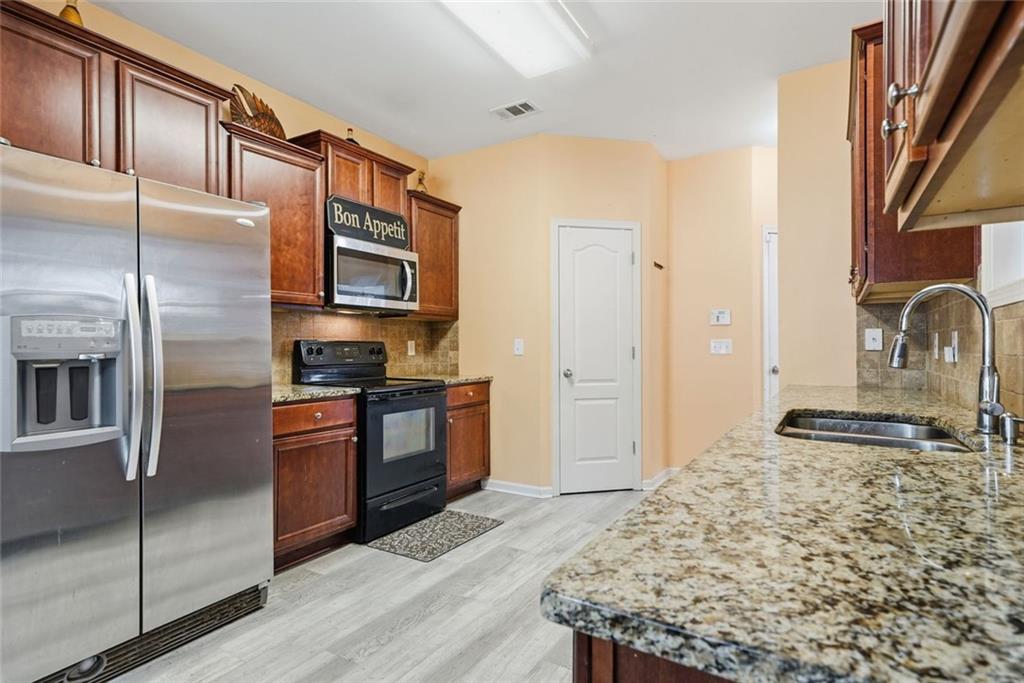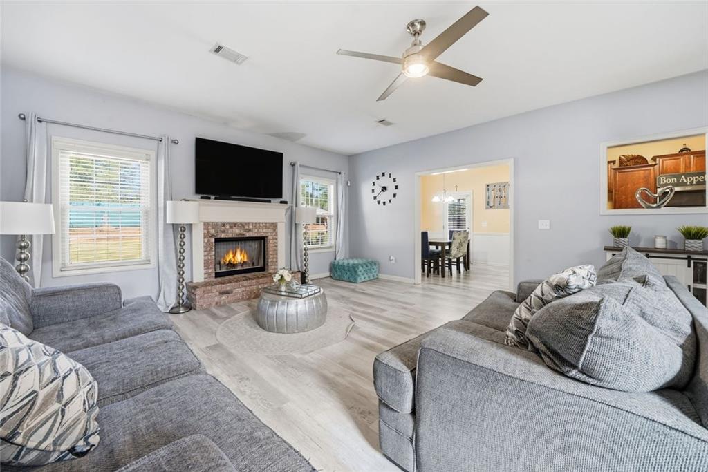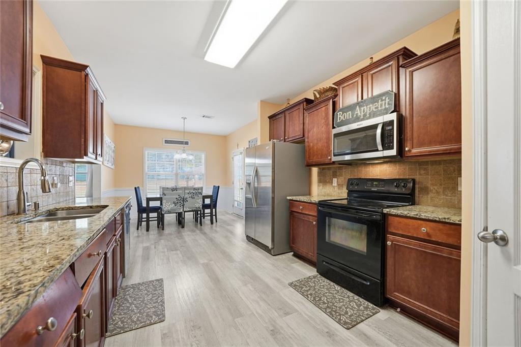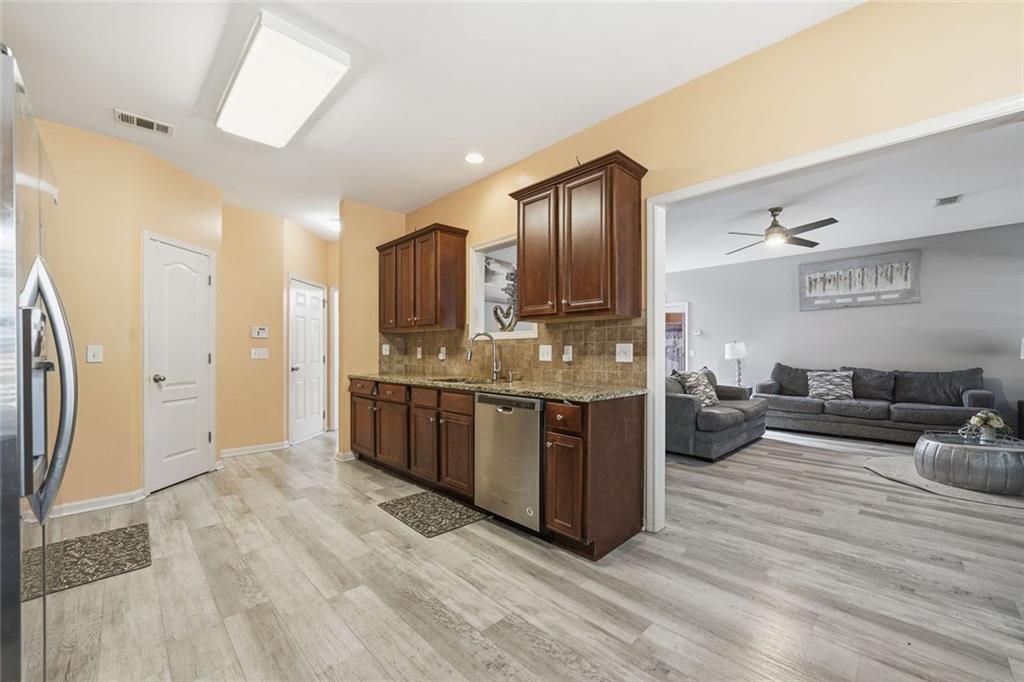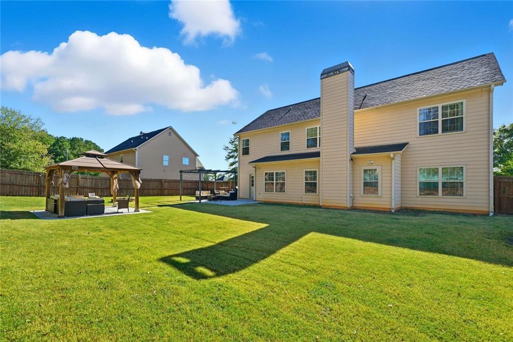 Beautiful 5 Bedroom, 3 Bathroom ready to move into home in wonderful Dacula sidewalk community. Enjoy your morning coffee on the covered front patio. This home offers a guest bedroom and full bathroom on the main level. The spacious kitchen opens to the great room featuring laminate hardwood flooring, granite countertops, tile backsplash, abundant cabinetry and an accompaniment of stainless steel appliances. Great room with fireplace. Formal dining and living rooms. Spacious, fenced backyard with patios and shed that remains.