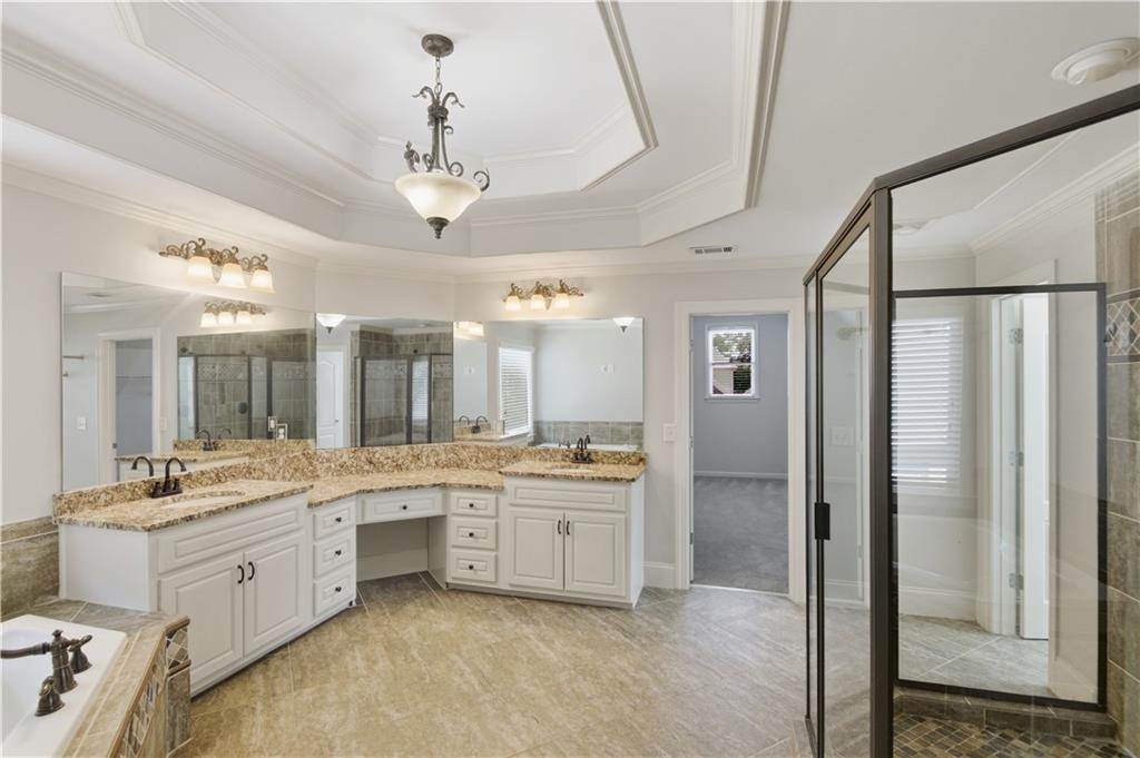 From the moment you arrive, this stunning 7-bedroom, 5.5-bath home with 3 car garage stands apart as one of the largest and most beautiful in the community - a place where every detail feels intentional and every space feels like home. Step inside to discover a grand two-story gathering room with coffered ceilings, bathed in natural light through. The open-concept kitchen is the heart of the home - featuring double ovens, a separate cooktop, large island, and an inviting keeping room with a vaulted ceiling and brick fireplace - perfect for gatherings that feel both elegant and warm. Upstairs, the primary suite is your personal retreat, complete with trey ceilings, dual walk-in closets, and double vanities - a serene escape at the end of each day. And when it's time to entertain or host guests, the finished terrace level delivers a wow factor - offering two large bedrooms, a full bath, and a large gathering area with its own kitchen island and eating space. It's the perfect setup for extended family, game nights, or private guest quarters. Outside, the beautifully landscaped yard complements this home's grand presence, all within the sought-after Seckinger High School district. Every inch of this home blends space, style, and sophistication - a place where comfort meets craftsmanship, and luxury truly lives