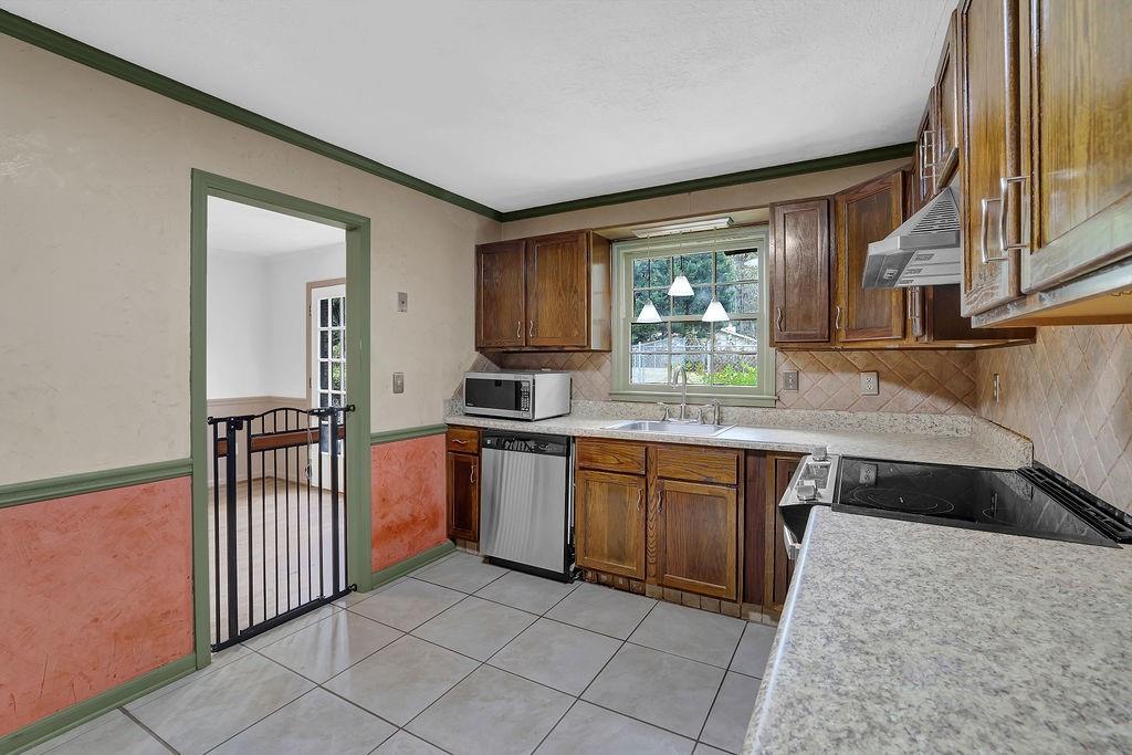 Step into timeless charm at this all-brick 3-bedroom, 2-bath ranch nestled on a spacious 0.72-acre lot in the heart of Lilburn! Vaulted ceilings create an open, airy feel in the living room, while a cozy brick fireplace adds warmth and character. The bright kitchen features solid wood cabinetry, tile backsplash, and a sunny view to the expansive, fully fenced backyard, ideal for pets, play, or peaceful privacy. With classic curb appeal, mature landscaping, and a quiet neighborhood vibe, this lovingly maintained home offers the perfect blend of comfort and convenience.