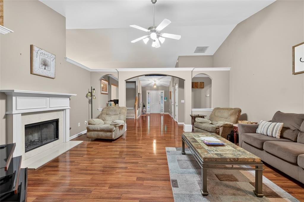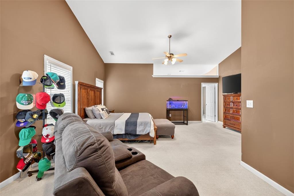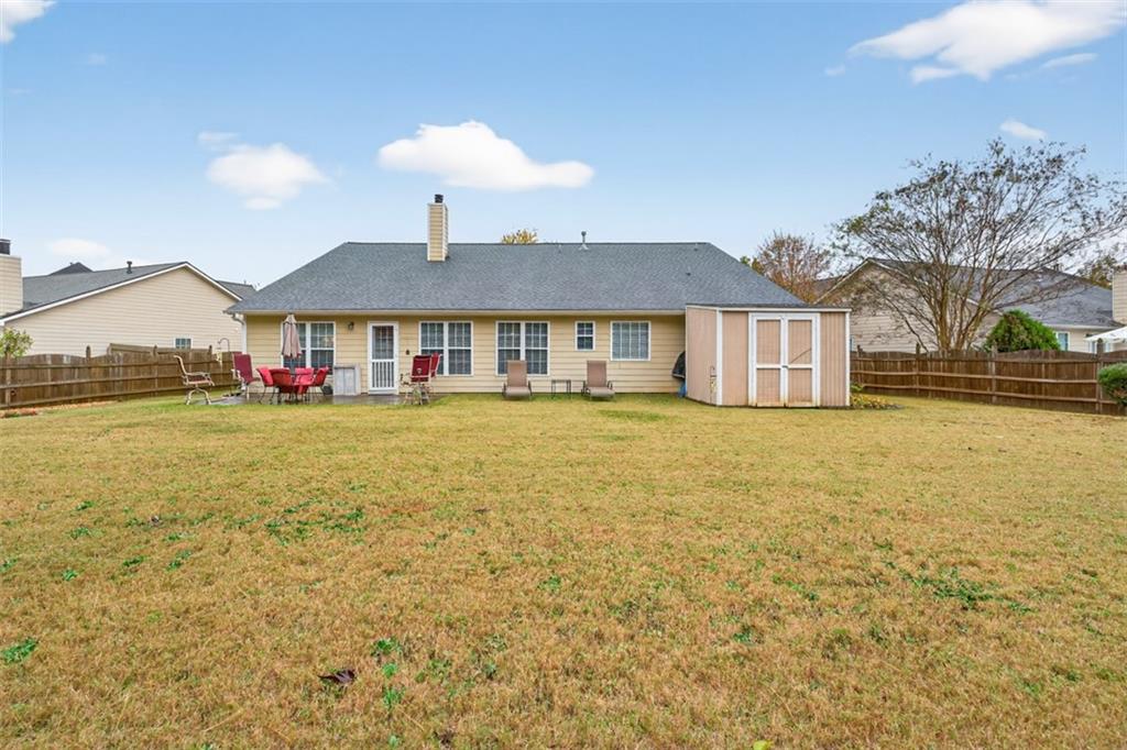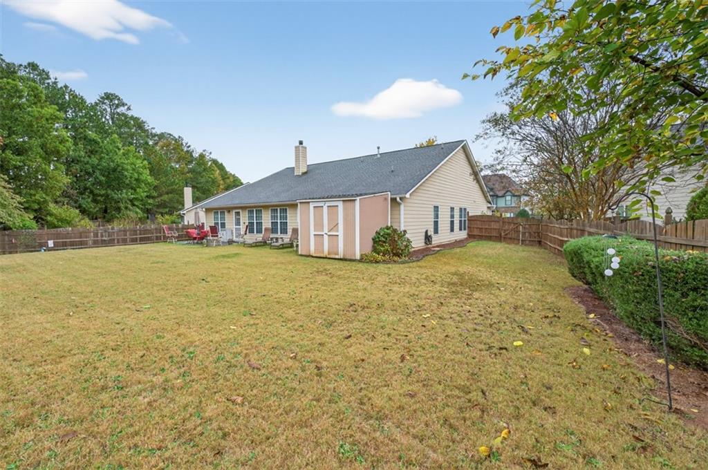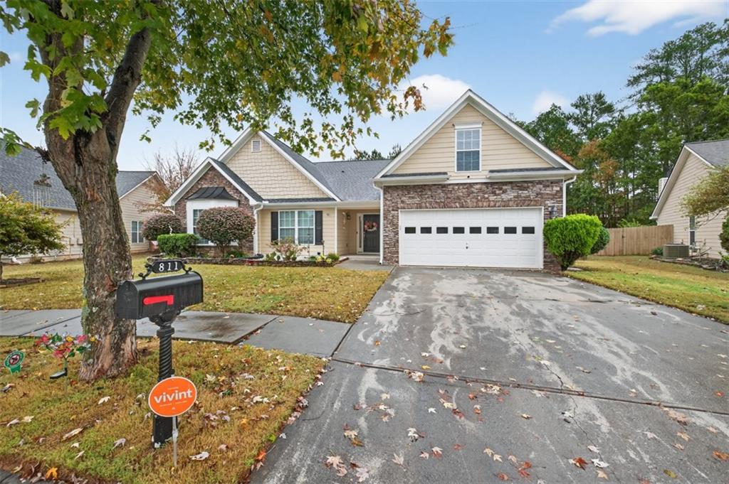 Don’t miss this expansive meticulously maintained ranch! The inviting foyer showcases vaulted ceilings with LVP flooring extending throughout the main area. A spacious family room with gas fireplace flows seamlessly to the sunroom overlooking the serene backyard. Gourmet eat-in kitchen features natural wood cabinets, tile backsplash, breakfast island, and an abundance of counter and cabinet space. The formal dining room is easily purposed as an office – flexible space for your needs. An oversized primary suite features vaulted ceilings, sitting room, dual closets, and en-suite bath with double sinks, separate shower, and spa bathtub with tile surround. Both generously sized secondary bedrooms boast ample closet space and natural light. The bonus room serves as a 4th bedroom or additional entertainment space. Phenomenal level, fenced backyard provides privacy, beautiful landscaping, and plenty of space for relaxing and entertaining. This dynamic community includes a clubhouse, pool, tennis and pickle ball courts, full basketball court, and playground. Great location close to shopping, restaurants, and easy access to Mall of Georgia!