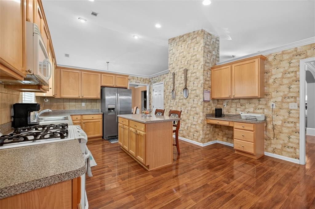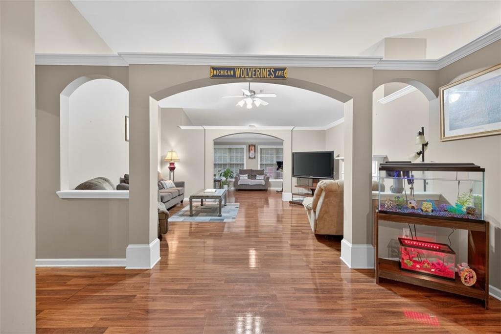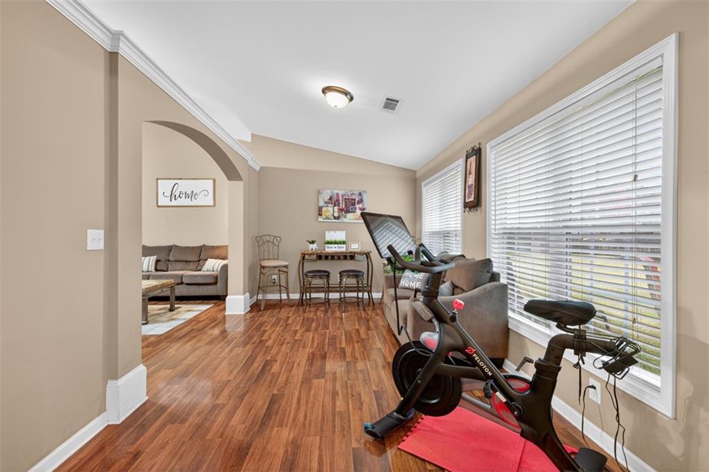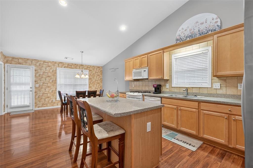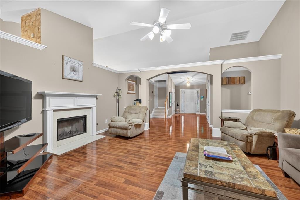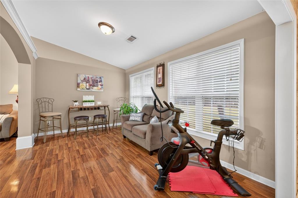 Don’t miss this expansive meticulously maintained ranch! The inviting foyer showcases vaulted ceilings with LVP flooring extending throughout the main area. A spacious family room with gas fireplace flows seamlessly to the sunroom overlooking the serene backyard. Gourmet eat-in kitchen features natural wood cabinets, tile backsplash, breakfast island, and an abundance of counter and cabinet space. The formal dining room is easily purposed as an office – flexible space for your needs. An oversized primary suite features vaulted ceilings, sitting room, dual closets, and en-suite bath with double sinks, separate shower, and spa bathtub with tile surround. Both generously sized secondary bedrooms boast ample closet space and natural light. The bonus room serves as a 4th bedroom or additional entertainment space. Phenomenal level, fenced backyard provides privacy, beautiful landscaping, and plenty of space for relaxing and entertaining. This dynamic community includes a clubhouse, pool, tennis and pickle ball courts, full basketball court, and playground. Great location close to shopping, restaurants, and easy access to Mall of Georgia!