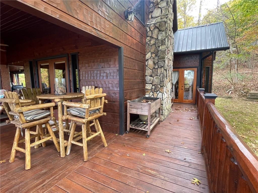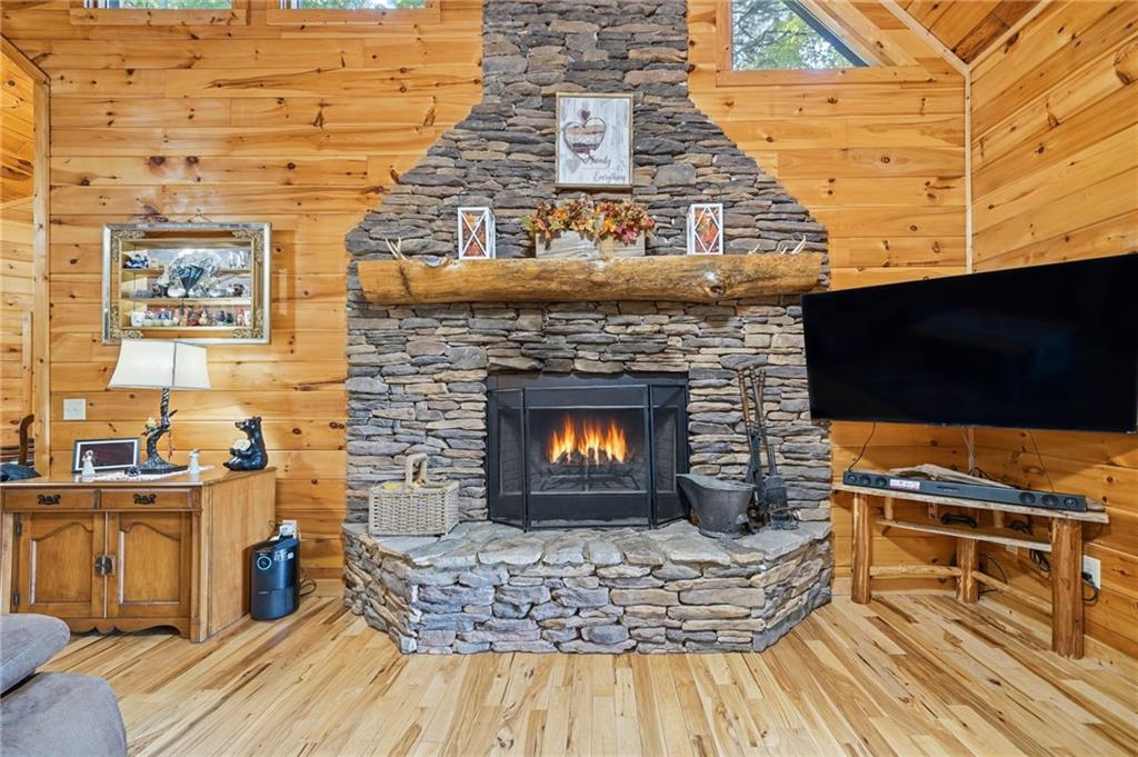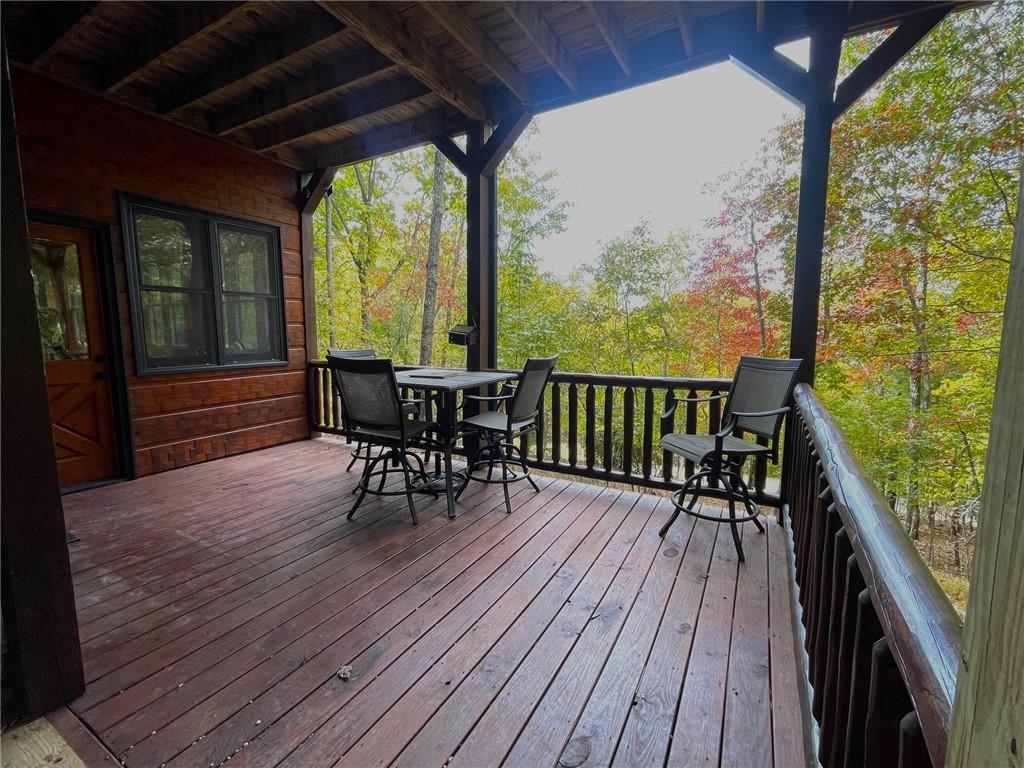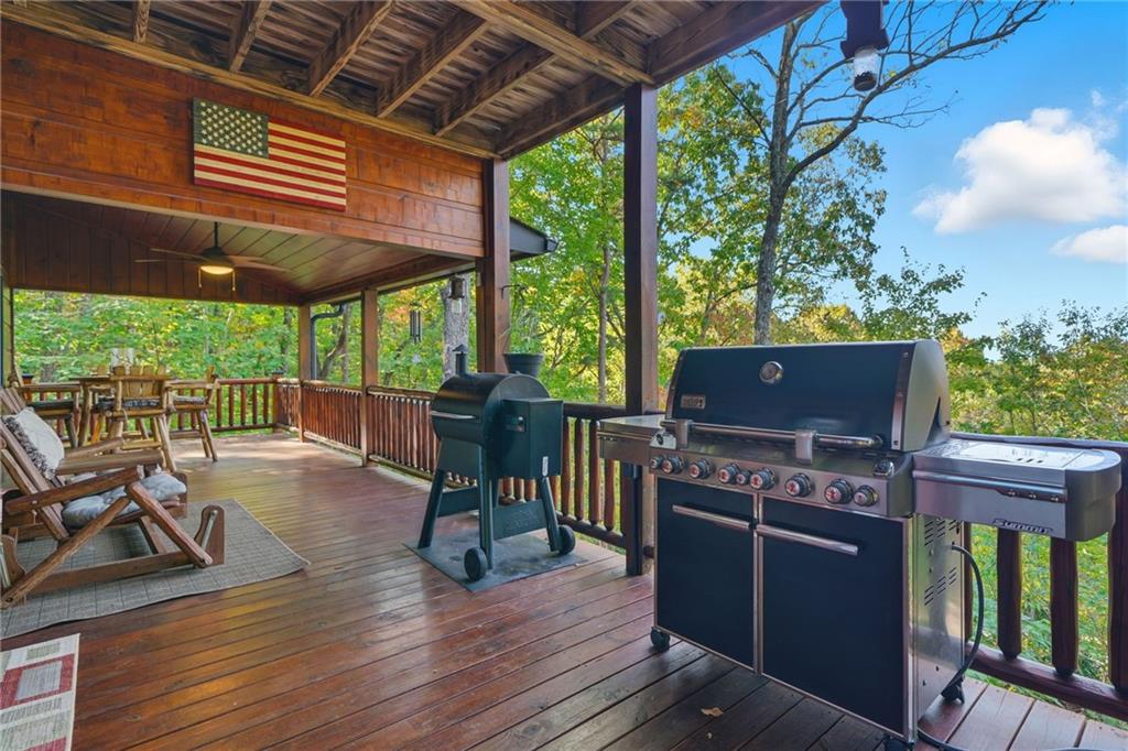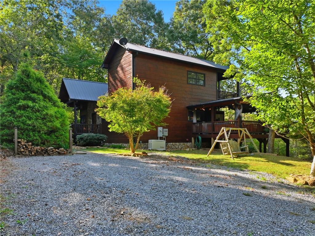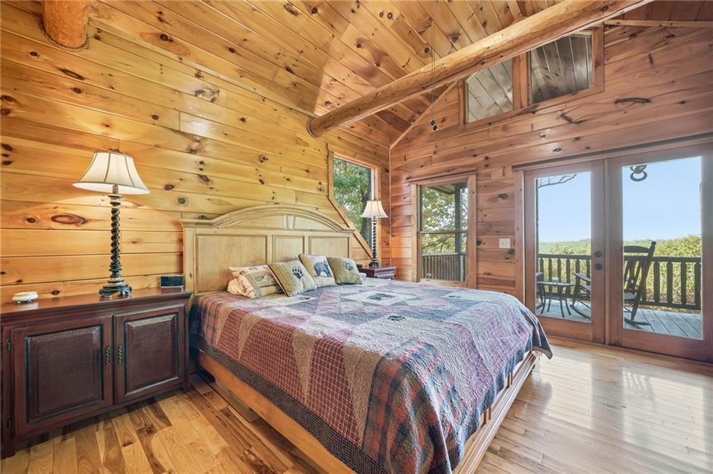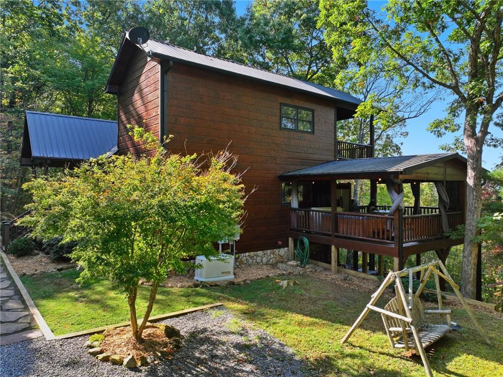 WELCOME TO YOUR MOUNTAIN DREAM HOME ESCAPE! Private - Pristine- Peaceful -Picturesque - all describes this delightful home. This western facing, craftsman style home charmingly brings the sunsets to you daily with the long-range mountain views from the many windows & expansive multiple decking & porches! Enjoy its seamless blend of rustic touches & modern comfort with many newer updates including a whole house GENERAC (see the list!). This beautiful home offers an open concept plan - great for entertaining- soaring ceilings, exposed beams, hand hewn railings & posts, Live Edge countertops & stairs, "carved Stag" entry door, & rich Hickory wood floors! The PRIMARY BEDROOM ON MAIN has access to the rear expansive porch with fireplace & Hot Tub, or the PRIMARY BEDROOM UPSTAIRS has a private balcony & even more amazing long-range views! Your choice! The terrace level bedroom suite is near the WET BAR/KITCHENETTE, 2nd living space, private rear deck and sunroom. You'll feel worlds apart on this 1.67 acre lot that provides a "tucked away" tranquil setting - yet minutes away from town & shops. ALL PAVED ROADS - only 2.4 miles to 515/76, and 12-15 mins drive to Blue Ridge, Blairsville, Lake Nottley or Lake Blue Ridge. SOME FURNISHINGS NEGOTIABLE. This is where timeless craftsmanship meets mountain serenity. Come escape today and fall in love!