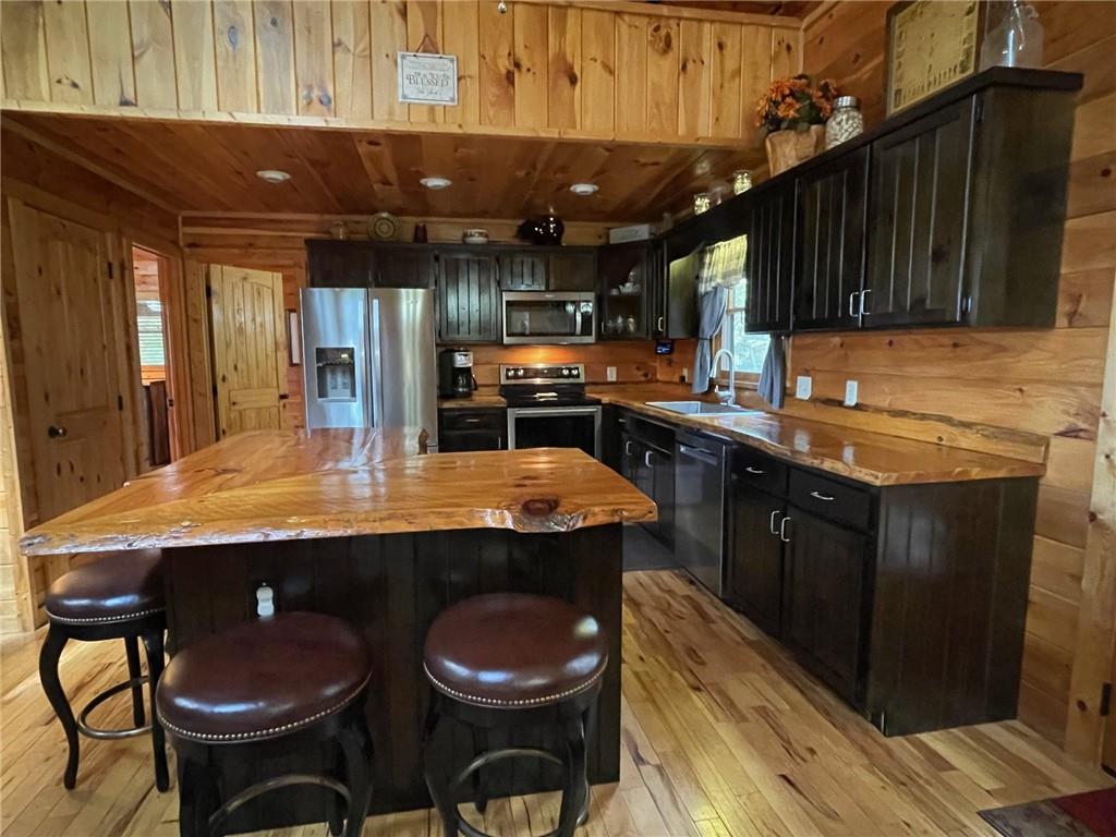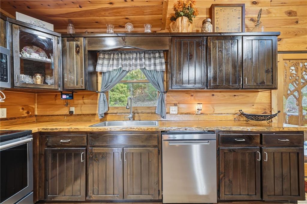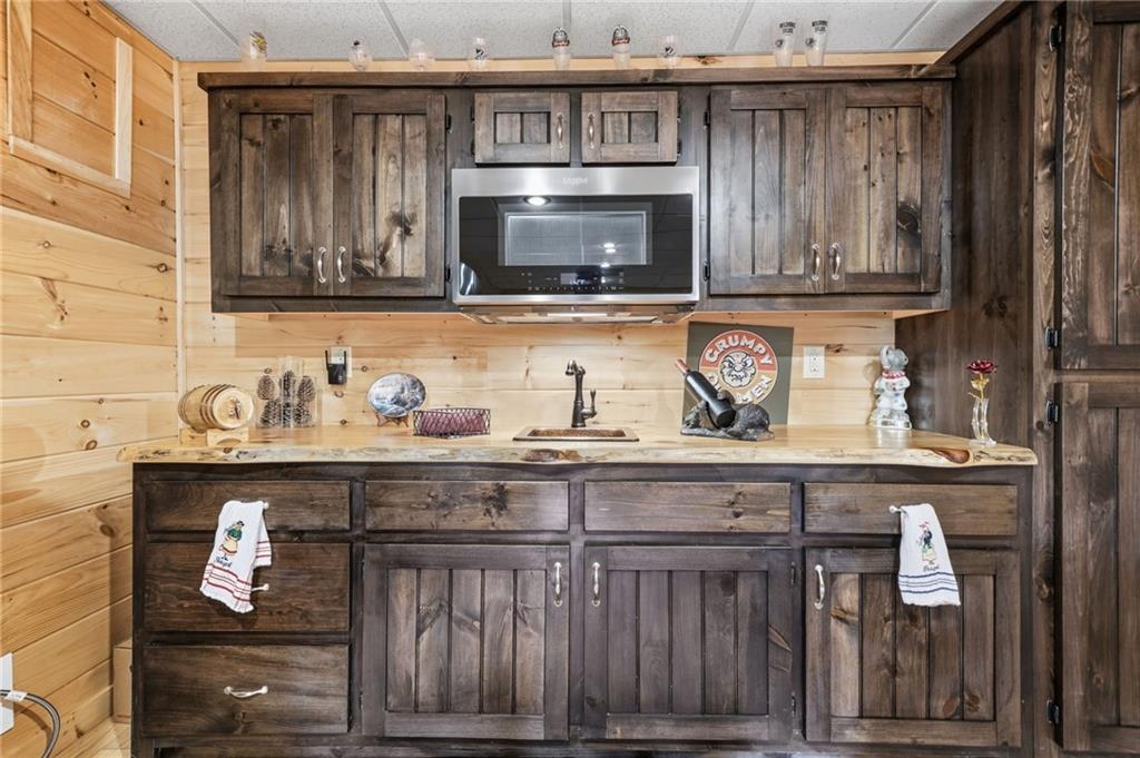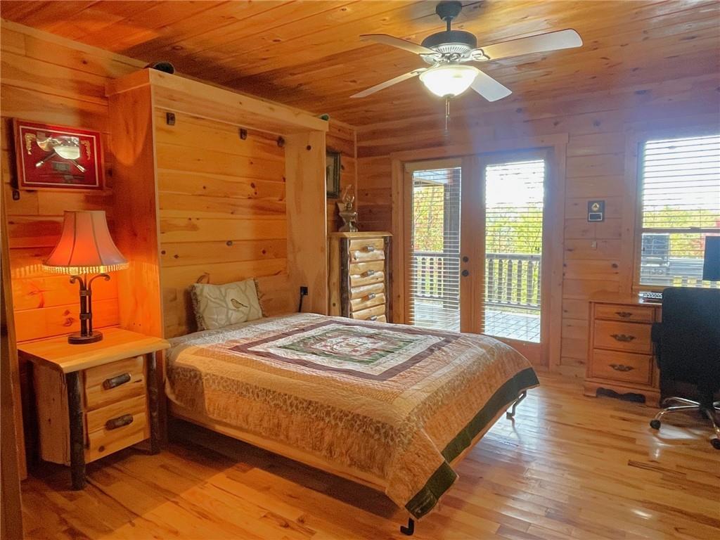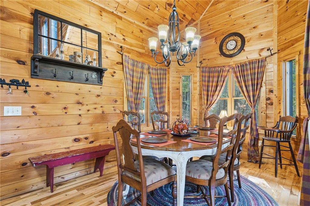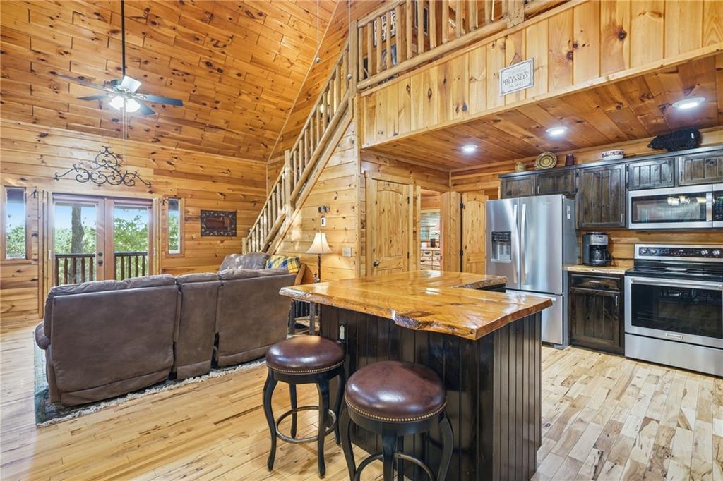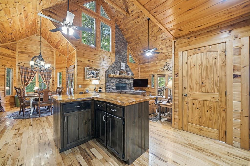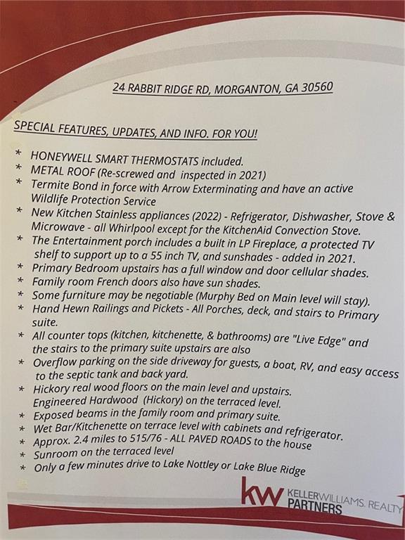 WELCOME TO YOUR MOUNTAIN DREAM HOME ESCAPE! Private - Pristine- Peaceful -Picturesque - all describes this delightful home. This western facing, craftsman style home charmingly brings the sunsets to you daily with the long-range mountain views from the many windows & expansive multiple decking & porches! Enjoy its seamless blend of rustic touches & modern comfort with many newer updates including a whole house GENERAC (see the list!). This beautiful home offers an open concept plan - great for entertaining- soaring ceilings, exposed beams, hand hewn railings & posts, Live Edge countertops & stairs, "carved Stag" entry door, & rich Hickory wood floors! The PRIMARY BEDROOM ON MAIN has access to the rear expansive porch with fireplace & Hot Tub, or the PRIMARY BEDROOM UPSTAIRS has a private balcony & even more amazing long-range views! Your choice! The terrace level bedroom suite is near the WET BAR/KITCHENETTE, 2nd living space, private rear deck and sunroom. You'll feel worlds apart on this 1.67 acre lot that provides a "tucked away" tranquil setting - yet minutes away from town & shops. ALL PAVED ROADS - only 2.4 miles to 515/76, and 12-15 mins drive to Blue Ridge, Blairsville, Lake Nottley or Lake Blue Ridge. SOME FURNISHINGS NEGOTIABLE. This is where timeless craftsmanship meets mountain serenity. Come escape today and fall in love!